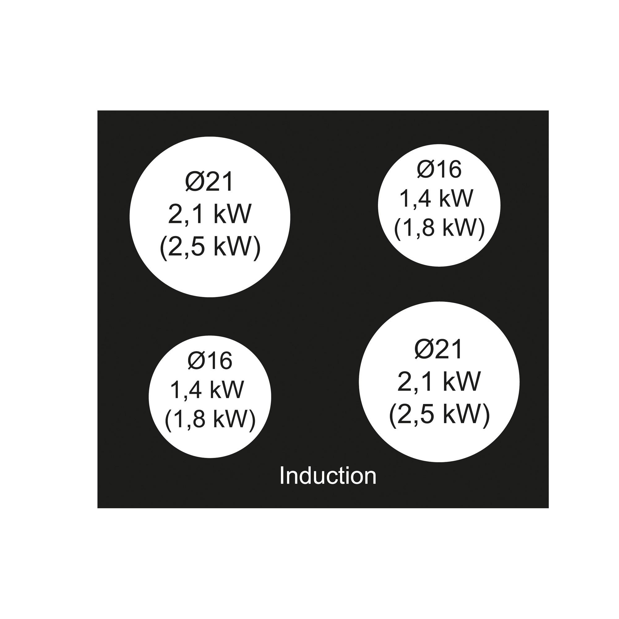 Induktionshäll. Med rak kant - Svart - 59cm